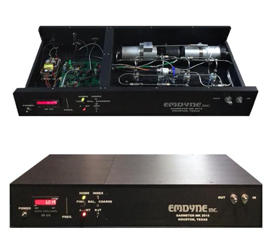 The EMDYNE MK2015 GASMETER measures the volume of gas collected to a precision of 0.1 ml and